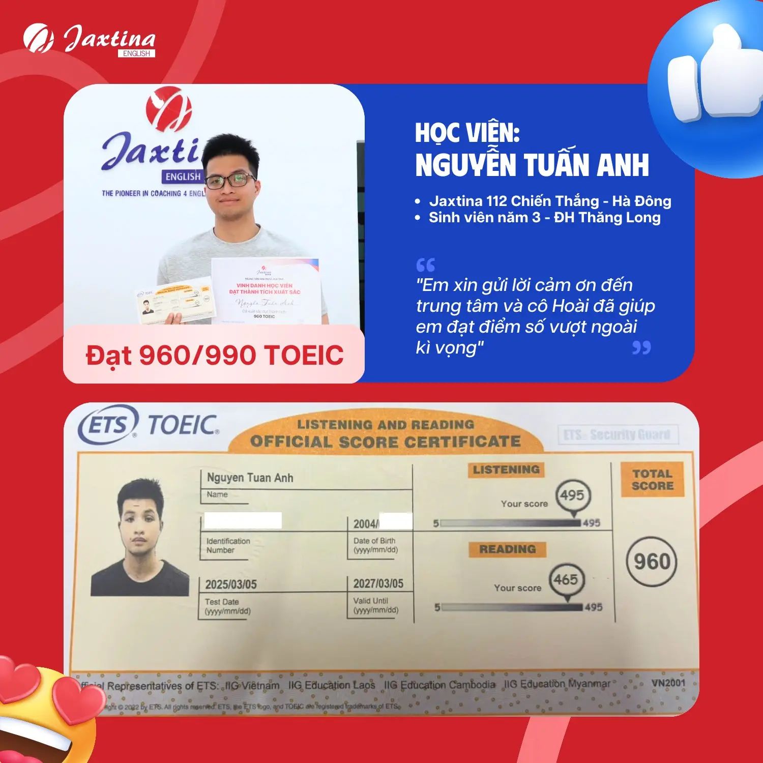 Sư phạm tiếng Anh Toeic 850 3 năm kinh nghiệm