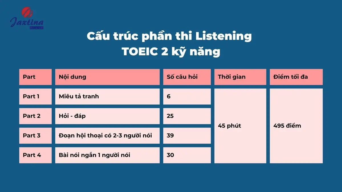 Cấu trúc phần thi Listening TOEIC 2 kỹ năng