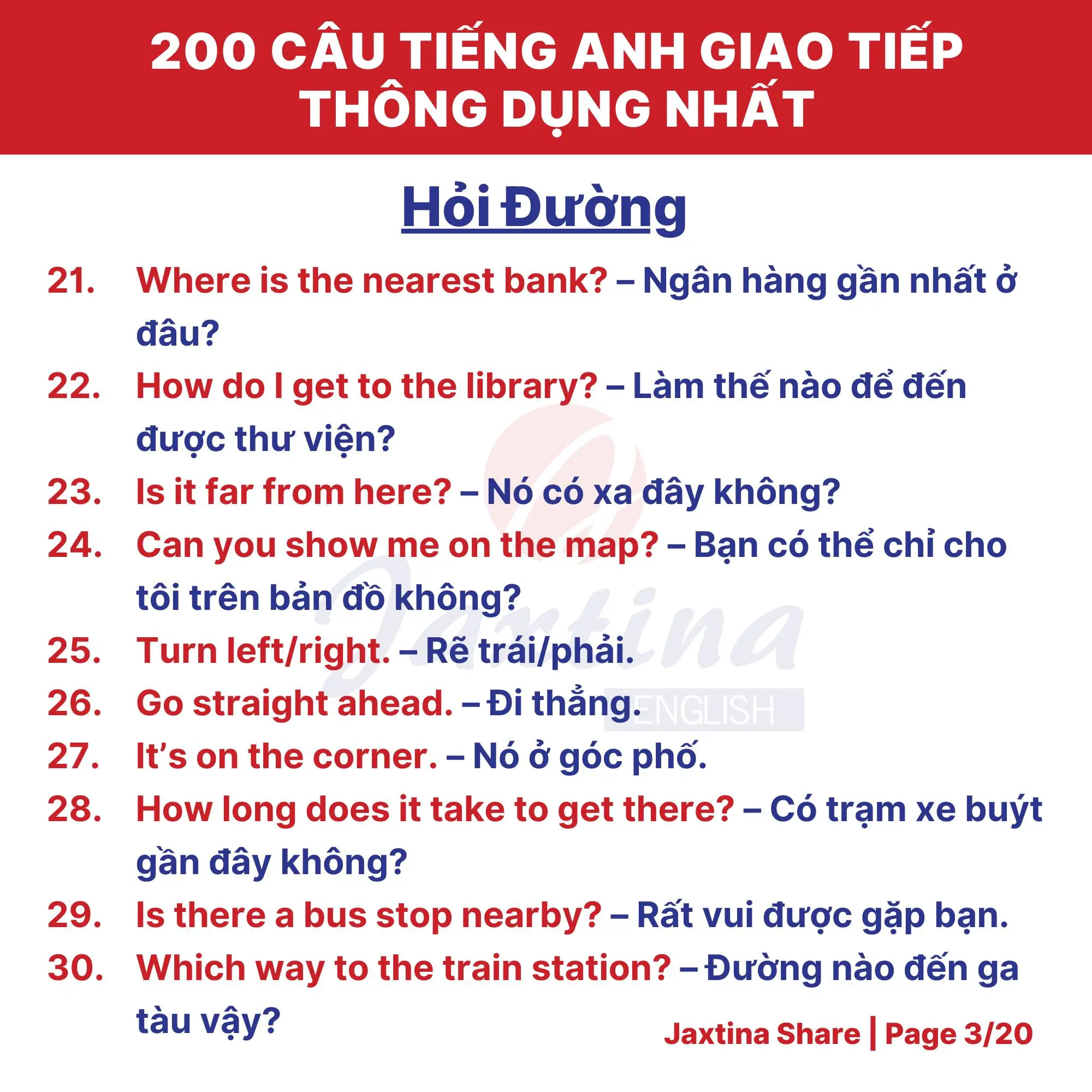 >>> XEM THÊM: Cách chỉ đường bằng Tiếng Anh đơn giản và thông dụng nhất