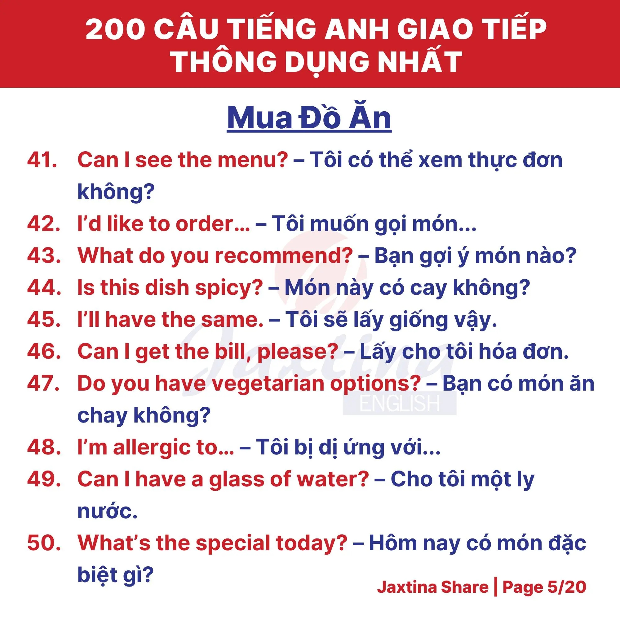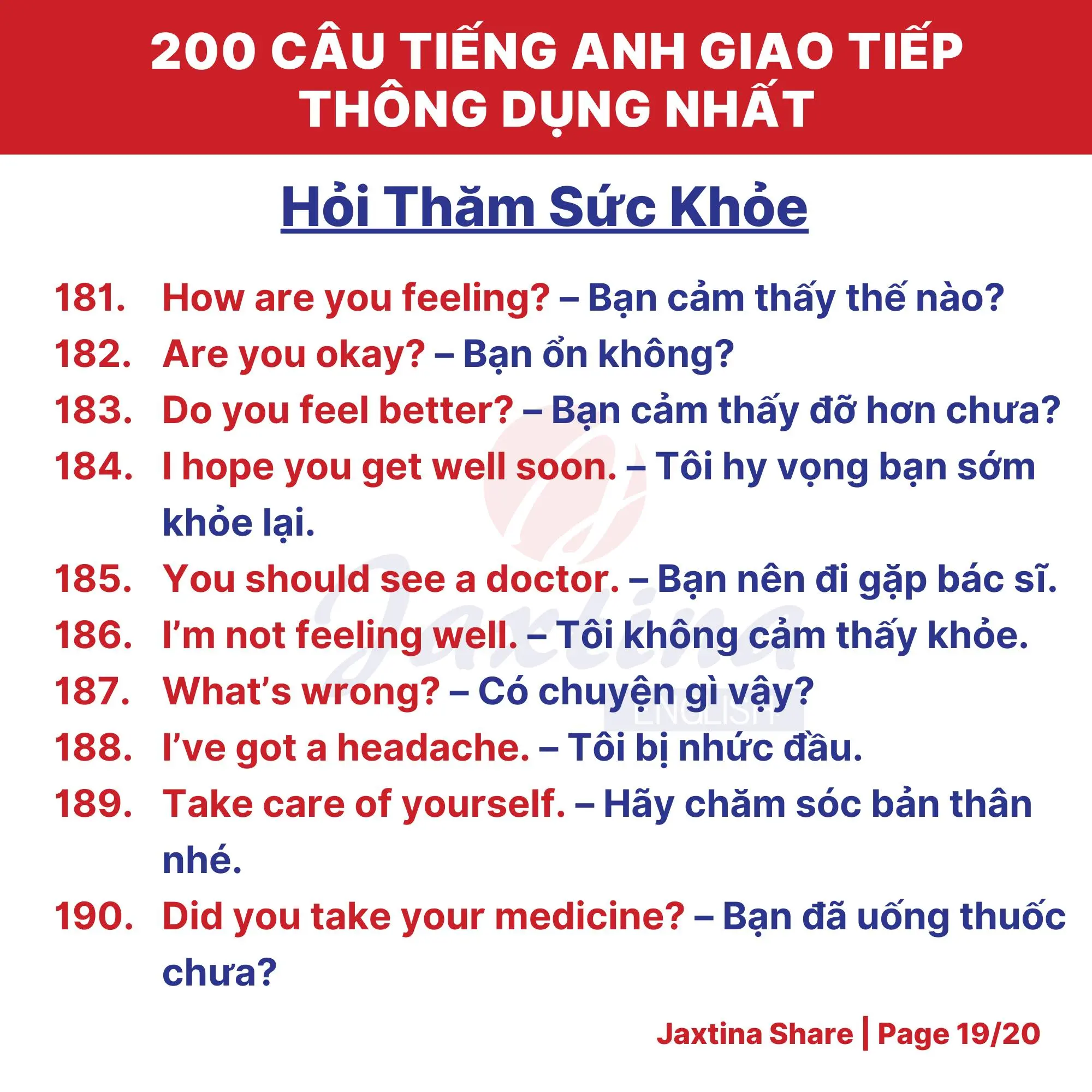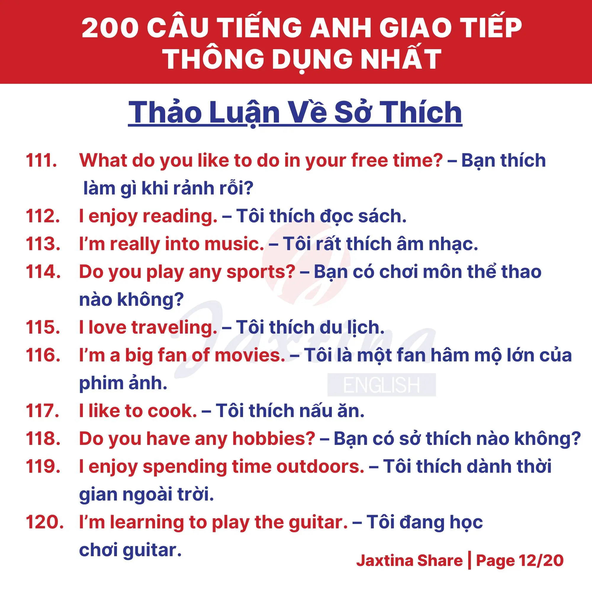 THAM KHẢO THÊM NHỮNG MẪU CÂU GIAO TIẾP TIẾNG ANH HÀNG NGÀY: