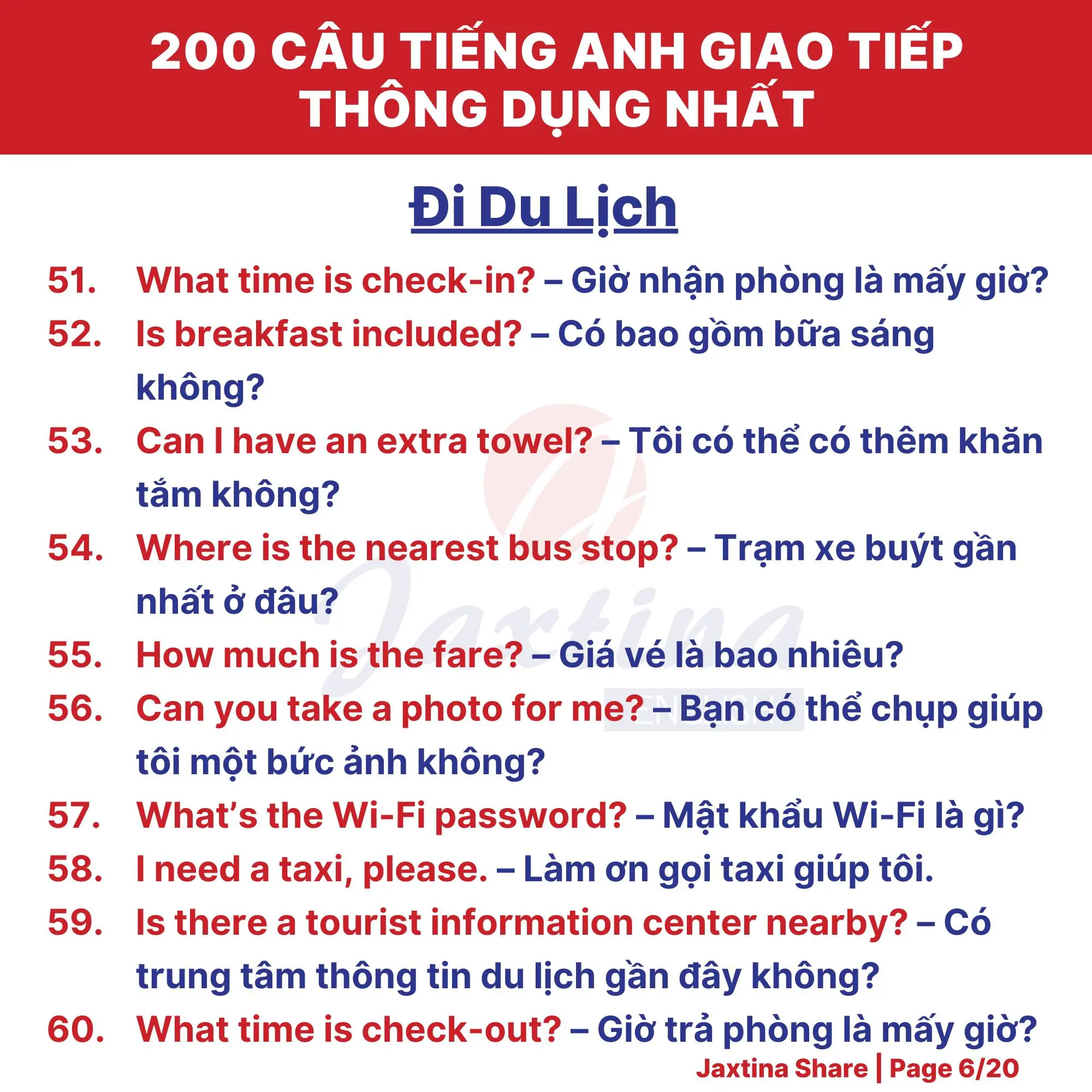 >>>> XEM NGAY: Học tiếng Anh giao tiếp để đi nước ngoài với 100+ mẫu câu hữu ích