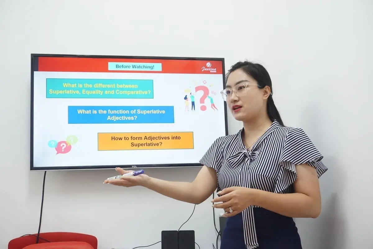 Jaxtina Minh Khai tự hào sở hữu đội ngũ giáo viên giỏi, tận tâm và giàu kinh nghiệm. Giáo viên của Jaxtina có kỹ năng truyền đạt hiệu quả, giúp học viên dễ dàng tiếp thu kiến thức, truyền cảm hứng, tạo động lực học tập tích cực cho từng cá nhân. Đội ngũ bao gồm cả giáo viên Việt Nam và giáo viên bản ngữ, đều có bằng cấp cao, chứng chỉ quốc tế như IELTS, TOEIC và chuyên môn sư phạm. Các thầy cô luôn duy trì kỷ luật lớp học nghiêm túc, đồng thời đồng hành sát sao, hỗ trợ học viên phát triển toàn diện cả về kỹ năng và thái độ học tập. [caption id="attachment_62101" align="aligncenter" width="1200"]học tiếng anh minh khai Đội ngũ giáo viên chất lượng[/caption] >>>> GỢI Ý BẠN: Top 5 trung tâm tiếng Anh quận Đống Đa chất lượng, đáng đăng ký