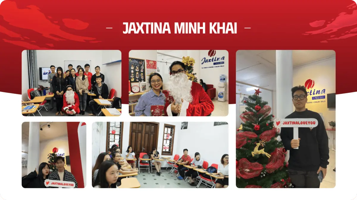Jaxtina Minh Khai áp dụng những phương pháp giảng dạy hiện đại, hiệu quả nhằm tối ưu hóa quá trình tiếp thu và phát triển kỹ năng tiếng Anh của học viên. Tiêu biểu là phương pháp Flipped Learning – học viên chủ động tiếp nhận kiến thức qua video bài giảng trước khi lên lớp, giúp tiết kiệm thời gian và tăng cường tương tác trong buổi học. Bên cạnh đó, phương pháp 3C (Communicative - Cooperative - Cognitive) được áp dụng rộng rãi, tập trung phát triển kỹ năng giao tiếp tự nhiên, sự tự tin khi sử dụng tiếng Anh và năng lực vận dụng linh hoạt trong nhiều tình huống thực tế. Sự kết hợp giữa các phương pháp này tạo nên môi trường học tập năng động, giúp học viên học tập dễ dàng, hiệu quả và luôn cảm thấy thú vị trong từng buổi học. Qua đó, học viên sẽ nâng cao trình độ tiếng Anh và hình thành thói quen học tập chủ động, bền bỉ. [caption id="attachment_62099" align="aligncenter" width="1200"]học tiếng anh minh khai Jaxtina Minh Khai thường xuyên triển khai nhiều hoạt động, chương trình nhằm tạo hứng thú, động lực cho học viên[/caption]