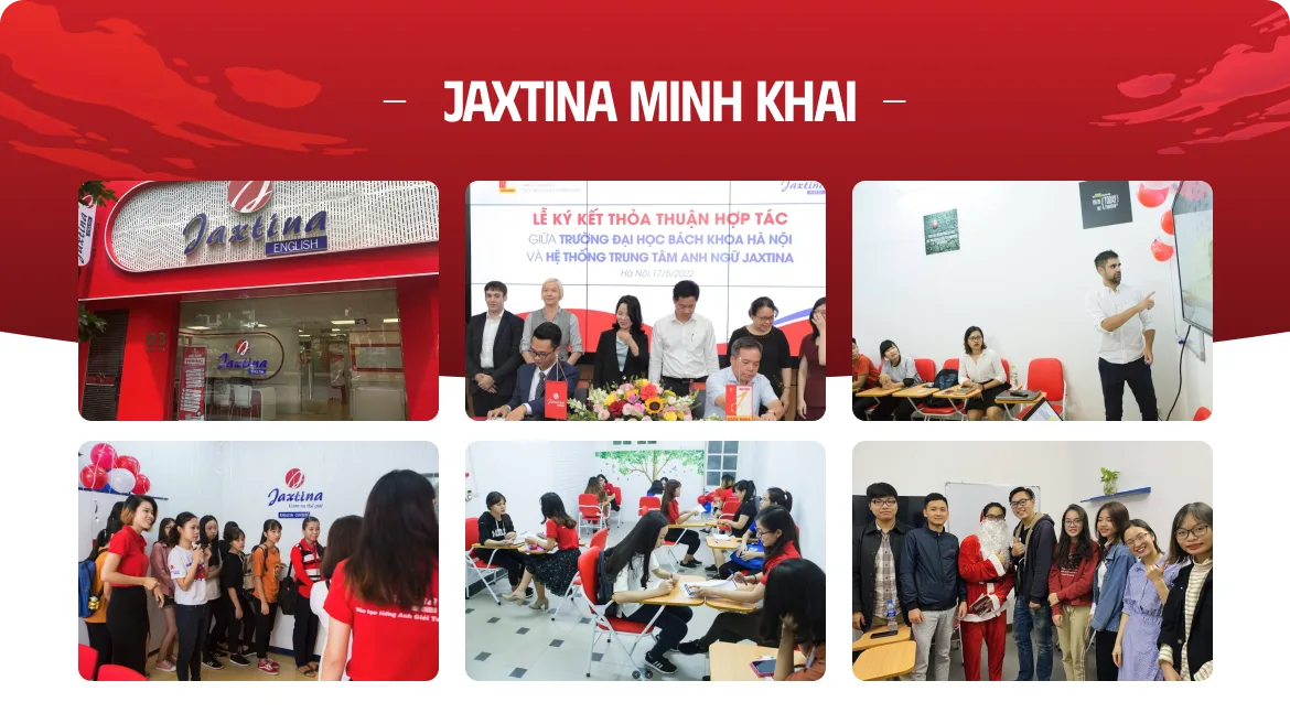 Nếu bạn đang tìm một địa chỉ học tiếng Anh Minh Khai chất lượng, Jaxtina là lựa chọn đáng cân nhắc. Đăng ký ngay để bắt đầu hành trình học tiếng Anh bài bản và hiệu quả hơn mỗi ngày.>>>> XEM THÊM: TOP 5 Trung tâm tiếng Anh Thanh Xuân uy tín, chất lượng