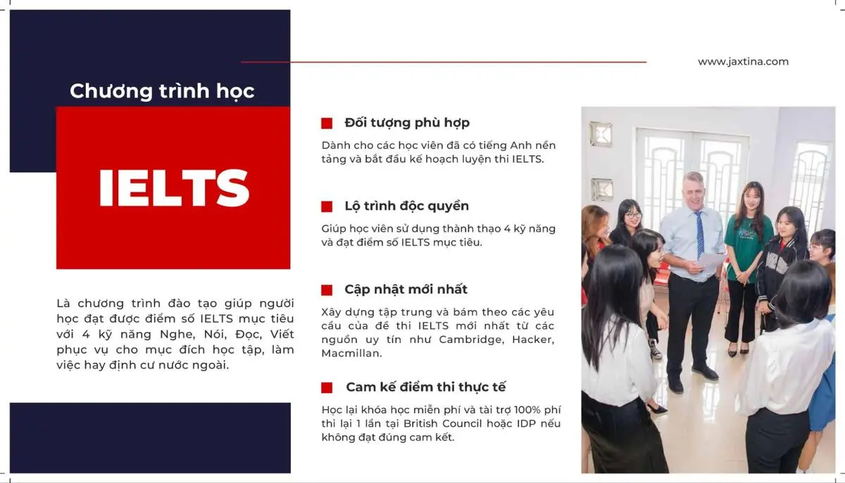 Jaxtina English Center là một trong các trung tâm luyện thi IELTS hàng đầu, cam kết giúp bạn chinh phục band 7.0 với phương pháp đào tạo chuyên sâu, được hàng ngàn học viên đánh giá cao.