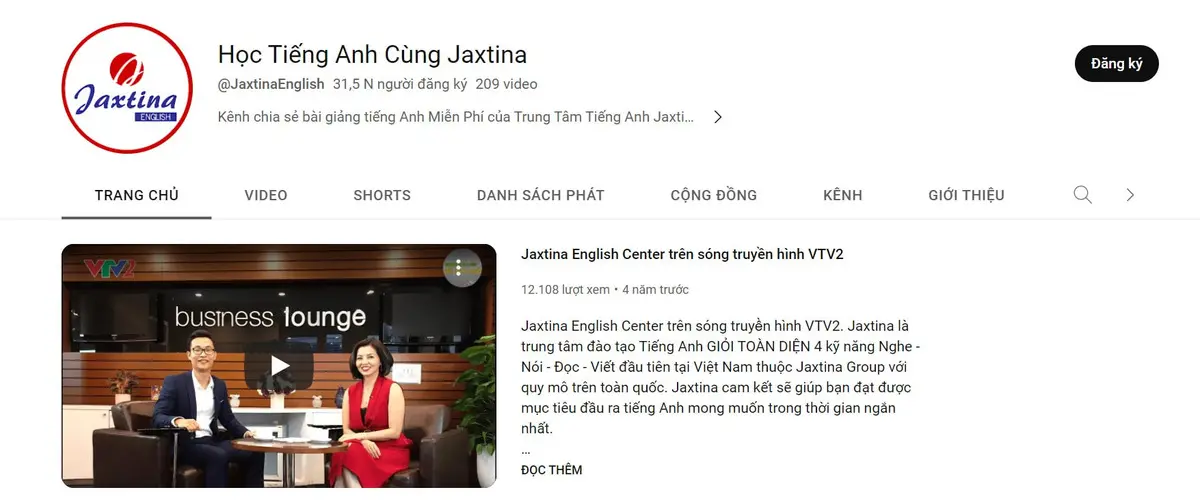 • Jaxtina Official – Video ngắn, sát tình huống thực tế, dễ luyện nghe – nói.