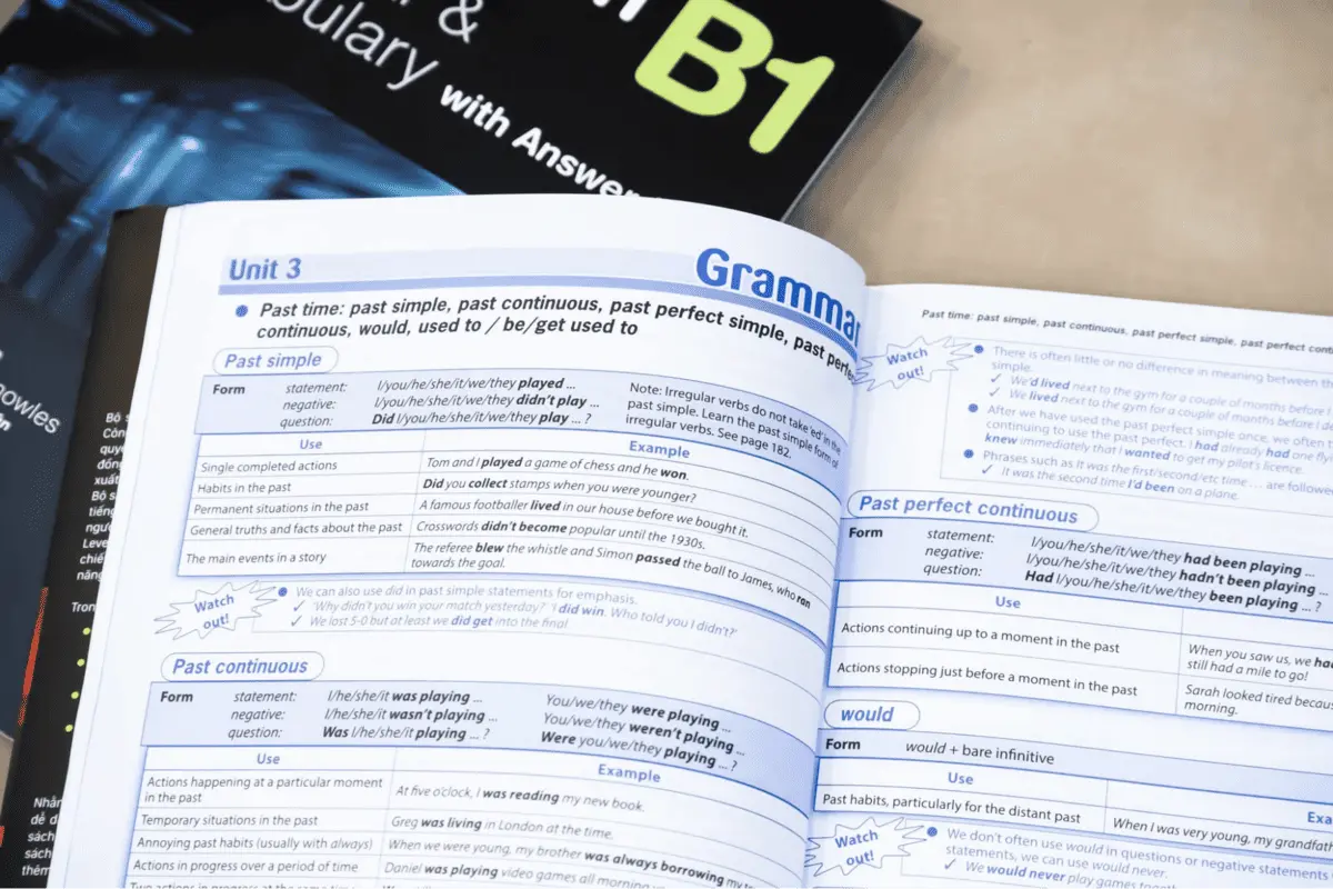 Về ngữ pháp, thì đối với trình độ B1, người học nên tập trung vào 6 thì cơ bản nhất:
