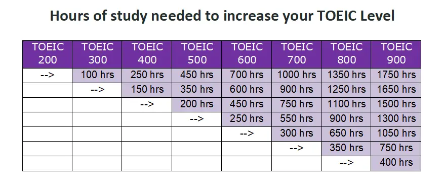Bảng trả lời cho câu hỏi học TOEIC 700 mất bao lâu
