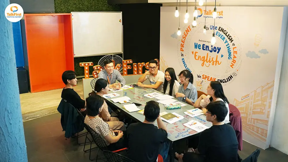TalkFirst là một trong những trung tâm tiếng Anh cho người mất gốc ở TPHCM được đánh giá cao nhờ mô hình lớp học nhỏ gọn. Cách tổ chức này giúp cá nhân hóa tối đa lộ trình học và tăng cường sự tương tác giữa học viên và giảng viên. Với phương pháp Immersive Learning – học chìm trong ngôn ngữ, người mất gốc được tiếp xúc và sử dụng tiếng Anh ngay từ đầu, giúp phản xạ và khả năng giao tiếp cải thiện nhanh chóng.